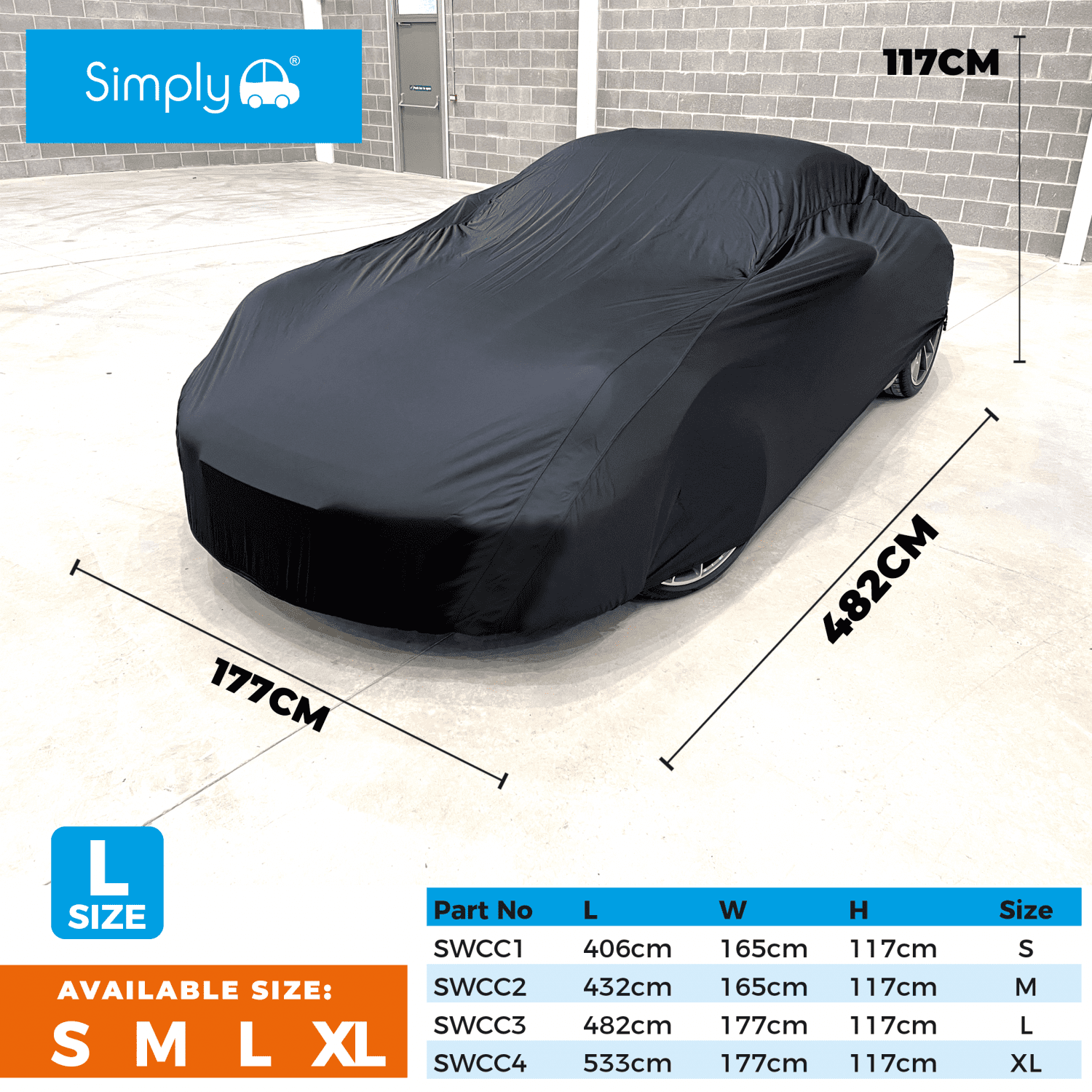 SIMPLY AUTO SUPERSOFT-INDOOR CAR-COVER-BLACK: De Simply Supersoft Indoor Car Cover is een geweldige oplossing om je auto vrij te houden van stof en vuil wanneer je hem binnenshuis opbergt. De hoes is volledig ademend en het zachte materiaal beschadigt de carrosserie niet.
